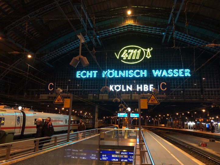 Cologne, known for its Cathedral and for its Eau de Cologne, and has the tallest Christmas tree in Rhineland. And we loved the Angel Market/Engel Market of Cologne,when we visited last time and a friend had loved the photos of Engel Market from the last trip. All these reasons lured us back to Cologne. We walked out of the station in to the Cathedral. Personally, it’s my favourite Cathedral after the Rouen Cathedral. I love the Gothic architecture of the Cathedral and how the structure looms over the city with its presence and the market next the Cathedral is absolutely lovely and full of festive cheer. We went to the the famous 4711 shop, which sells the original Eau de Cologne/ Kolnisch Wasser or simply Water of Cologne. I remember when I was a little girl, when it was too hot in afternoons, my mother would rub Eau de Cologne on my temples, as a respite from heat. We walked around the Angel Christmas market, before heading back to the Christmas market next to the Cathedral. We stood under the tallest tree of the Rhineland, taking selfies and photos. It was time to head back to Frankfurt, to our Hotel