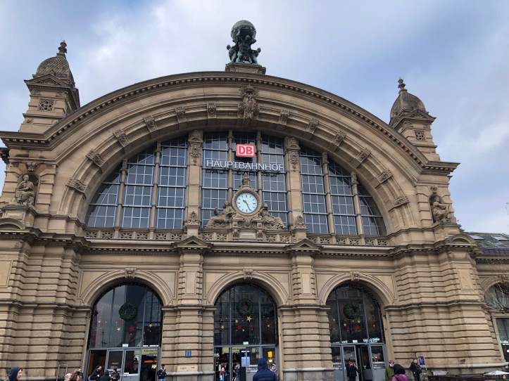 We reached the Frankfurt Hauptbahnhof/Main station, by afternoon. The station is very impressive architecturally, a neoclassical building , perhaps very similar to other stations constructed during that era. It is one of the busiest station of Germany, thronging with people from all walks of life. I was very impressed with the station, it had a buzz about it, architecturally, culturally and socially; a proper confluence of new age and by gone era. While Walking out of the the main building, at top of the building, I noticed a statue. I later found out that is the statue of Greek God Atlas carrying the world on his shoulders, supported by two figures. The two figures are metaphoric representation of Iron and steam.