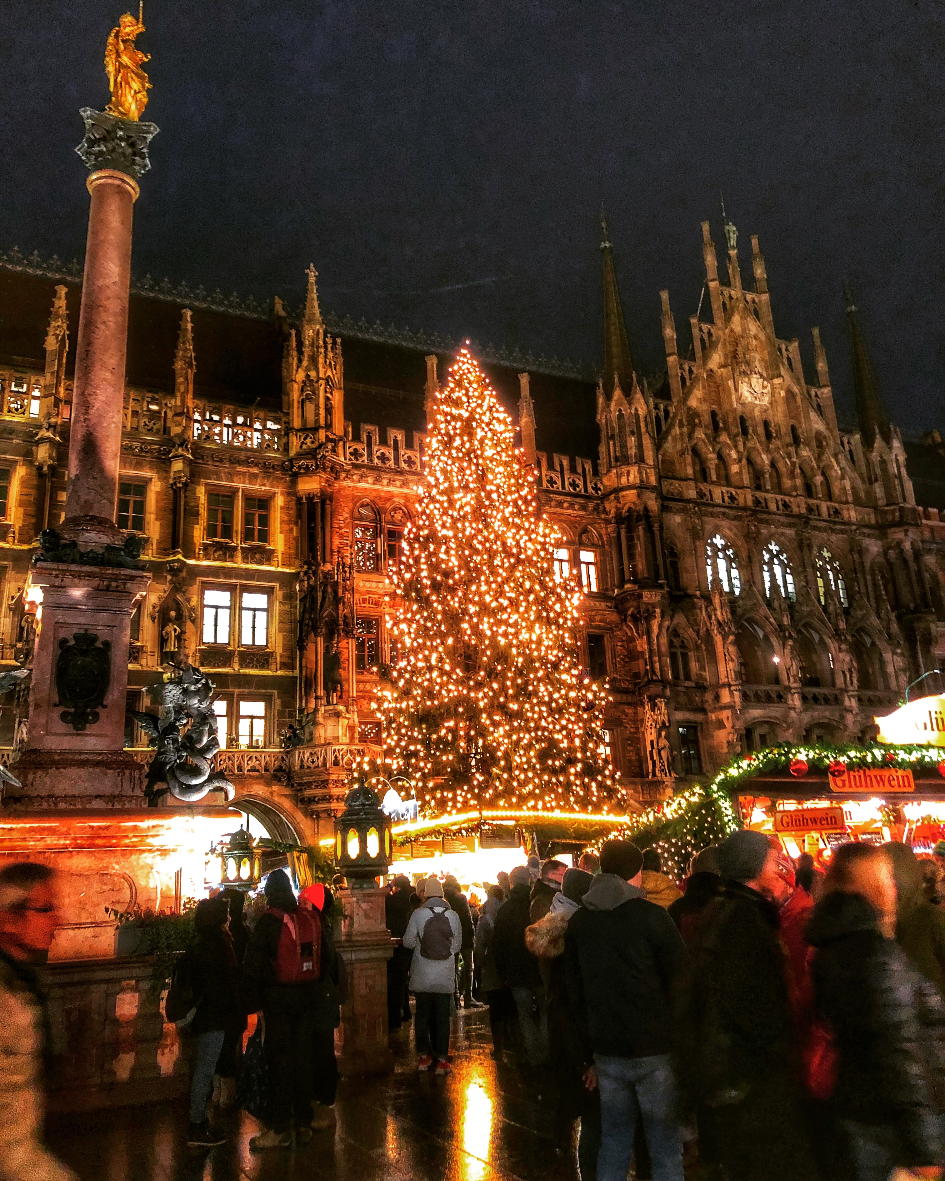 The next day we planned to visit Munich, the capital and largest city of Bavaria. We booked a late afternoon guided walking tour of Christmas Markets at Munich. We had a easy start of the day, beginning with a leisurely breakfast. There is something revitalising to start a day in an unhurried way, sitting and having a conversation, contemplating and simply being in the moment. After the breakfast, we went to the Handwerkerhof/Handycrafts market near the station. It’s a medieval shopping area, withal collection of little shops selling locally hand made items. The items are priced on the higher side, given that they are handmade and unique. I particularly liked a cook shop selling carved rolling pins. After a bit of stroll and wandering around in the market, and we walked to Nuernberg Hauptbahnhof to board a train to Munich. It was a pleasant journey of an hour in to Munich Main station. On reaching the Munich station, we had a lunch at the station which was pretzel and Minestrone soup. There are plenty of options to eat at station. We then walked over to place we were meeting our Guide for the tour. The tour begins at the station, takes you through the oldest Christmas Market at Marienplatz, Sendlinger Market, then with a 10 minutes stop at Christmas village at Munich Residence and the tour ending at Medieval market. The tour was informative, giving you the history of the markets and it also gives you a fair idea of different market, and you can explore further on your own, based on your liking. The tour was two hours and we booked it from viator. We liked the Marianplatz market, and on the way we noticed a St Michaels Church with beautiful murals on the walk, we were interested in visiting it. We were feeling peckish, so we stopped over at an Italian cafe/bistro.. We had the most delicious Pinza, which is sort of flatbread with sauce and topping, but not big as a pizza. I had not heard of a Pinza before this visit, and I really loved the taste and portion size of it. I would so love to try Pinza again. After a Pinza, I was looking at some cannoli filled with sugar, when the waiter who looked at me watching the cannoli wistfully, suggested a profiterole, as the cannoli would be too sweet. The profiteroles were simply divine and I am ever so grateful to the waiter, who had recommended both the Pinza and Profiterols. It was such a warm and welcoming cafe, and I am so upset with myself for forgetting the name of the restaurant . But I will always remember the place in Munich where I tried Pinza for the first time. We walked around the beautiful Marianplatz Christmas Market, visited the St Micheal s Church, and spent a memorable day at Munich. We headed back later in the night from a dazzling Munich to Nuremberg. We were back in Nuremberg in one hour and in to our hotel, resting our heads in warm beds and giving our our aching feet a good rest and a nights sleep.