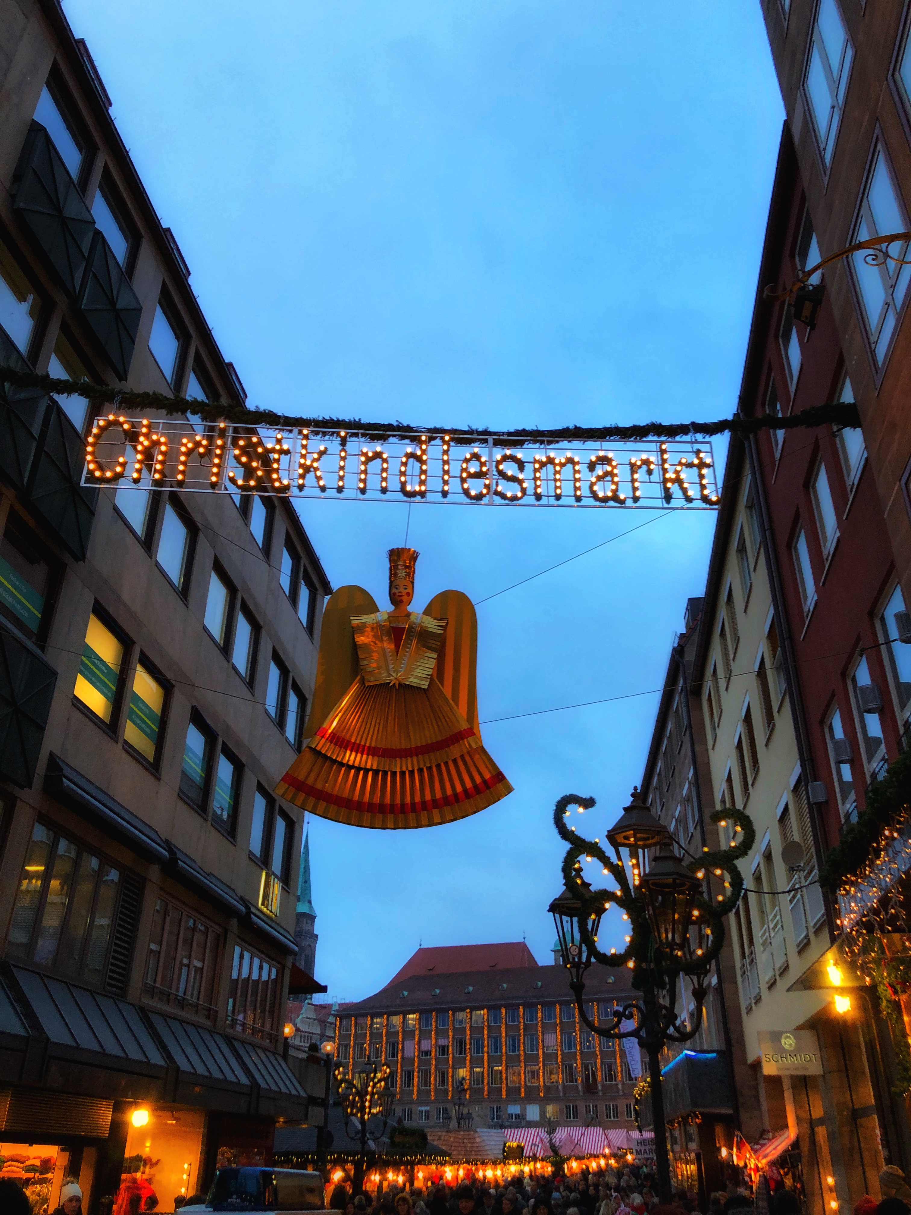 We walked towards the market, feeling extremely hungry. We discovered an Indian restaurant called Sangam on the way and we stopped over and enjoyed the delicious food. The Christkindlmarkt market did live up to its name, it is indeed one of the best markets I have visited, very traditional and beautiful. It is held at the main market square. The iconic landmark of Nuremberg Christmas market , golden angel is easy to spot and is everywhere, in the lights, the tree decorations, handmade curios. It follows a tradition of Chris kind/ Christ child , handing out gifts to children. The Christ child, at this market is a girl with golden hair and not baby Jesus. Every two year a girl with golden hair from the city is chosen to be Christkind, who would walk around the markets and handover gifts to little ones. We walked around in the market, looking out for the Christkind, but no luck of spotting her. We walked back to towards the hotel, talking about our eventful day and thinking about how wonderful it was to watch a sunrise in one city and sun set in another.