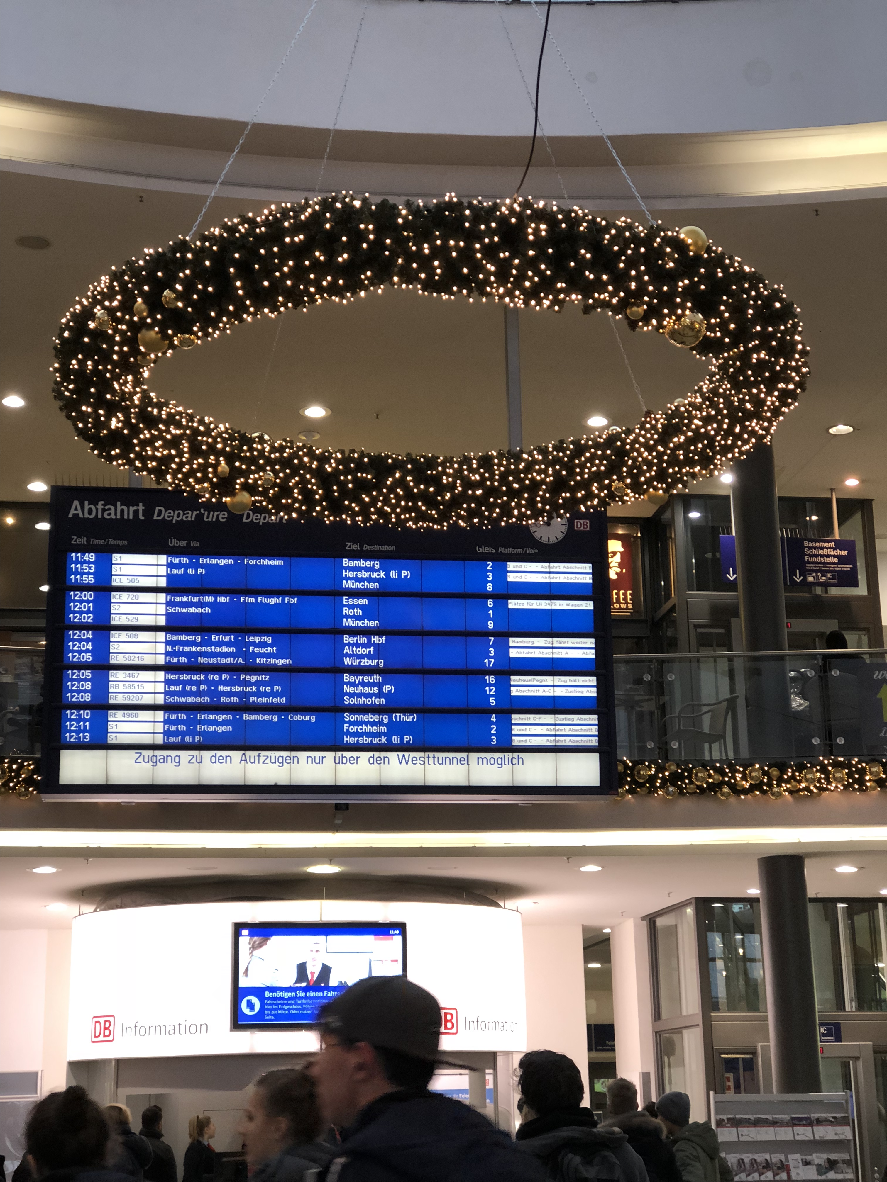 Hopping on and hopping off trains, traipsing through Christmas markets, Interrailing has been so much more than amusing. We checked out of the hotel, after a hearty and leisurely breakfast.We wheeled in our luggage to the Frankfurt Hauptbahnhof, boarded a train, bidding adieu to Frankfurt. We settled in to our reserved seats on Deutsche Bahn train to Nuremberg, our next destination. I updated our Interrail pass with the current travel itinerary. The train started to roll out of the platform, moving swiftly out of the station and the city. The train chugged along, the coach was absolutely quiet, with no noise not the even usual white noise , except the rhythmic sound of train chugging along,which to me sounds like a mother singing a lullaby to her baby, gently rocking her to sleep. The peace and quiet of the car, with the rolling meadows and countryside outside the window of the train, put us in to a sweet slumber, and both of us dozed off, me happily resting my head on my husbands shoulders and he resting his head on top of my head. We woke up to a commotion and chatter when a few more passenger boarded in at the next station. It was a crisp bright winter afternoon, with blue skies when train pulled in to Nuremberg. We walked in to the hotel. We were greeted by a very warm and friendly staff at the reception who gave us a lot of insight on the city, a map of the city and also told us about the famous Lebkuchen of Nuremberg. It’s a bit like gingerbread but not in its entirety. Nuremberg is the second largest city of Bavaria. It’s known for bratwurst /sausages, Lebkuchen, toys and Christkind Market/ Christmas market. The city is known for its infamous Nazi rallies. After the war, trials against German officials ,were held in Nuremberg, called the Nuremberg Trials. The Christmas market of this city is amongst one of the oldest known markets, is almost 400 years old. I had heard a lot about the Nuremberg Christmas market. Two years back, returning back from a Christmas market trip while I was waiting for my luggage to arrive , at London Heathrow Airport, is when I heard about Nuremberg Christmas market. It was from a fellow traveler standing next to me, while waiting for luggage, as we started exchanging our travel stories in order to kill the time. He was returning from a Christmas market trip, but unlike us he had been on a River cruise. He thought Nuremberg Christmas market was the best market he had seen on his trip. Since then I haven been looking up information and reading about Nuremberg . The market in Nuremberg is very traditional, the stalls at the market sell the best traditional handmade Christmas decorations, there are no plastic decorations sold at this market. And now I was very excited to be at Nuernberg.