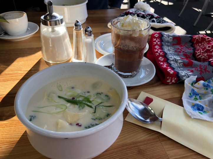 2. What a beautiful place! I would have been pretty scared in that cable car, too, but you were certainly rewarded with spectacular views. And the gorge with the frozen waterfalls and icicles, really stunning. I’ve never seen people basking in the sun in deck chairs with snow! A unique experience altogether.