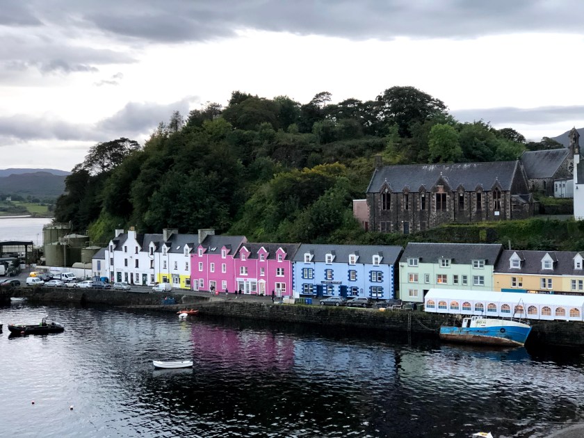 Portree , is the Capital of Isle of Skye and is a quaint town with colorful buildings, beautiful bay , surrounded by high cliffs. It is the perfect place to be, venture out to access the other islands. Due to the weather conditions we did not venture out in to the sea to see other islands, may be some other day . We were very happy to be just stay put in the cottage, venture out in the rains for walks, wandering around in the neighboring area, having a meal at the local pub and taking the nature.