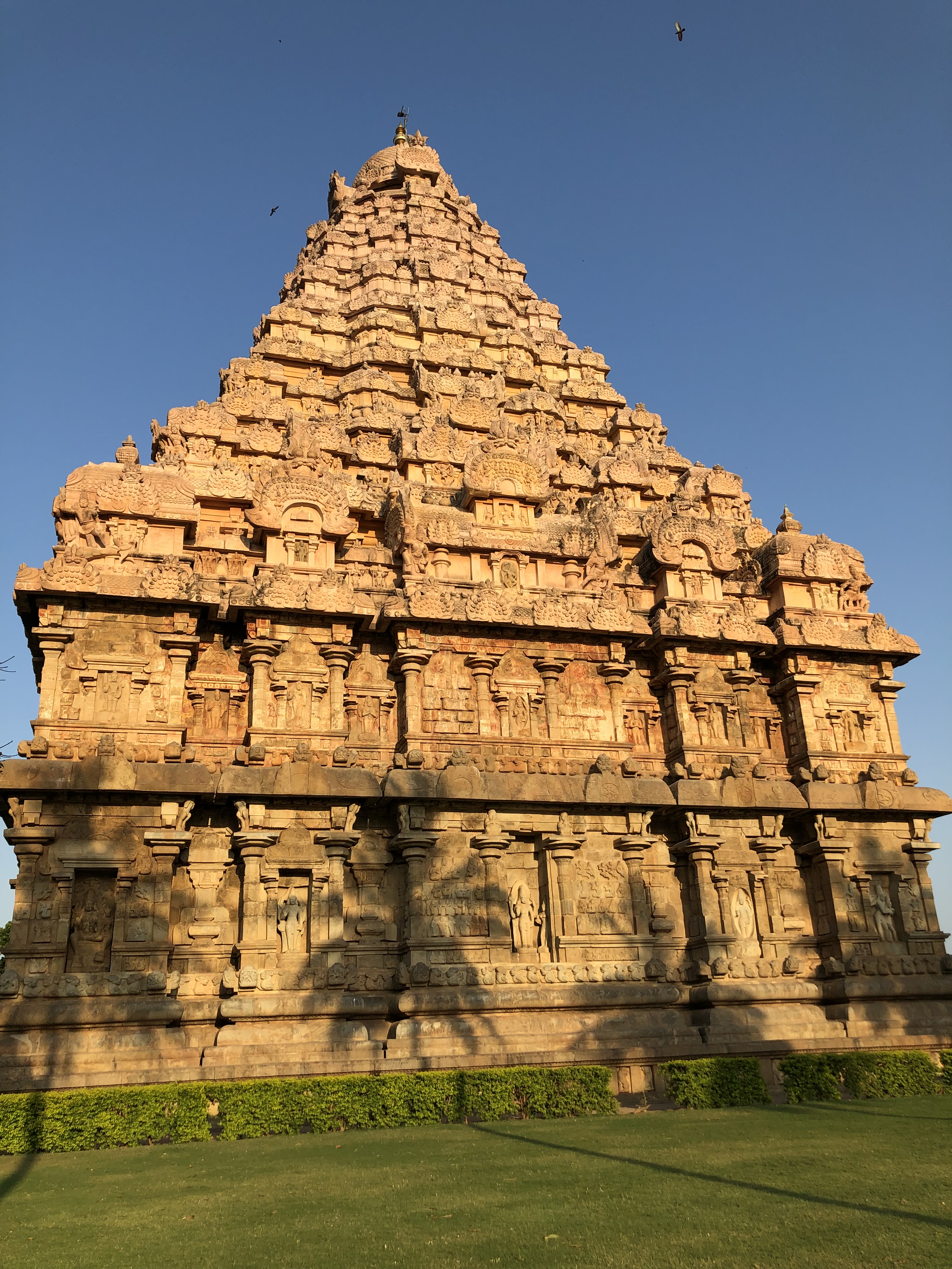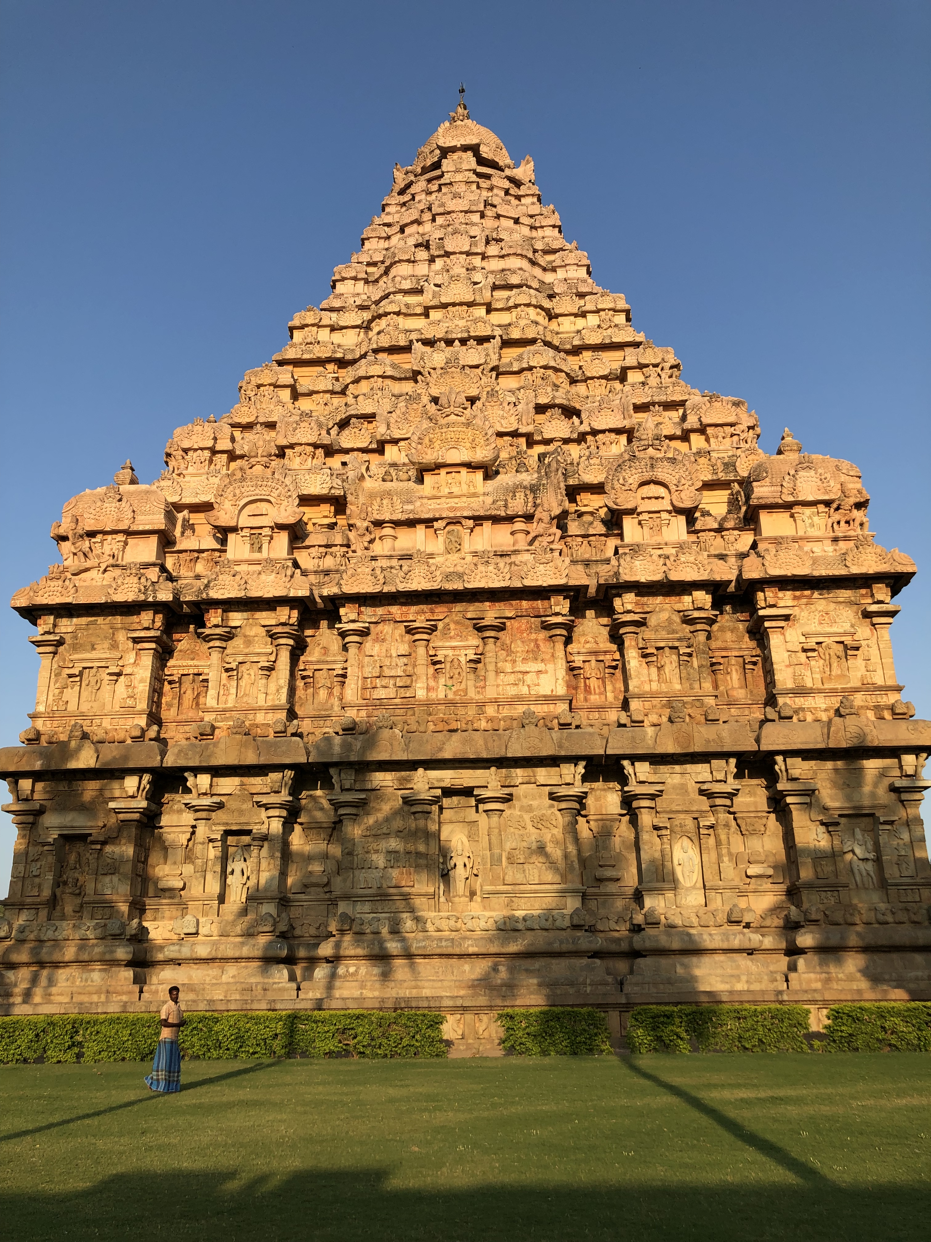 On this trip we travelled to a couple of cities, from West of India to South of India. Amongst them my personal favourite is Thanjavur district, in Southern India, well known for its cultural vibrancy and I have many fond nostalgic memories of the city. Thanjavur district is the rice basket of Southern India, the land of arts and Architecture. Thanjavur is also known for the three surviving Great Chola Architectures. The Brihadeesvara Temple/Big Temple in Thanjavur City, Brihadeesvara Temple at Gangaikonda Cholapuram/Jayakondam and Airateswara Temple at Darasuram. All the three temples are fine example of Dravidian Architecture and are built according to the Agama Principles. Agama Sastra,is an ancient scripture, which lays down the principles and rules for rituals of philosophical and spiritual practices ,for prayers and also the principles for construction of the temples, including the place of temple, sculptures and the materials to be used in the sculptures. The scriptures I have heard are in Sanskrit and also in Tamil. All the three temples were commissioned by the Chola rulers and were part of larger city, which got destroyed after the downfall of the Chola dynasty. The Chola reign is considered as one of the prosperous times for art, culture and Tamil Literature and is often referred as the Golden Age of Tamil Culture. The Chola Royals were a great patrons of art and literature. The Chola dynasty ruled over varying territories of the Southern India, from 3 century BCE to 13th Century CE. They had trading routes with South East Asia, and also had established themselves as cultural, military and economic power in South East Asia. They were known for their naval power in South Asia. They recognised temples not only as places of spiritual and religious practices, but also as major economic hubs. They took great interest in administration of the temples, built educational institutions, places to stay and hospitals, around the temples. They also established water irrigation and dams in the region as it was known for its droughts, and helped in the making the region a very agrarian economy. They had pioneered a centralised system of ruling, and integrated the entire Southern India under one rule. Chola dynasty has left its huge mark on the Southern India’s History, architecture and literature. I would like to mention here, I am not a historian, but am a huge history buff and an avid fan of the Chola dynasty , especially their architecture and their interest in arts and their enthusiasm in making culture a priority along with being an economic and military power. My father had a degree in History, with a specialisation in Indian History, so I raided his books as a youngster to look for more information and picked on his brain a lot for more information. I was very impressed to find out that one of the kings of Chola dynasty, RajaRaja Chola 1/ Arulmozhi Varman( he was the one who commissioned the Brahadeeswara temple in Thanjavur) was chosen as king through a democratic process of the court. In the 1950 s, a historical story was published based on Arulmozhivarman’s life and was published as a series in a weekly magazine, written by famous Tamil author R Kalki. It was later published as a set of five novels. It narrates the story of early days of life of Prince Arulmozhi Varman and the political battles within the dynasty for the throne. The narrative of the novel is absolutely vivid and evocative, and it brings to life the times of Chola dynasty. The series became very popular and created a frenzy in the newly Independent India and even now the book has a very big and specific fan base, very similar in nature to a Whovian or Potterhead. I have not learnt to read or write Tamil in a school, but learnt a very basic reading and writing in Tamil from my mother. During my school vacations, it was one of the chores which my mother loved and I loathed. I learnt it more to keep my parents happy. Yet the rudimentary reading skill I learnt came in handy in reading the Novel in my later years. It is the only Tamil novel I have read. And it took me nearly two to three years to finish the five sets of humungous books. I have slightly digressed from the Chola architecture, coming back to the architecture, the walls of the temples have inscriptions written in ancient Tamil language, which detail the account of the kingdom, the time and material used in building the temples, the people involved in the temple work, their wages etc.